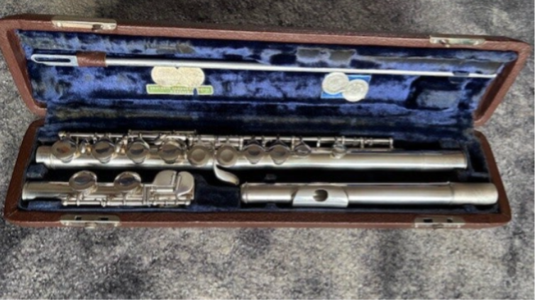 Volledig zilveren dwarsfluit van het gerenommeerde merk Selmer, beroemd om zijn hoogwaardige saxofoons. Deze bijzondere dwarsfluit is gebouwd tussen 1947 en 1949 door het Franse Selmer, dus niet te verwarren met het Amerikaanse Selmer-Bundy. De kwaliteit is daarom uitstekend, zoals die van de saxofoons. Duimkleppen met zogenaamde dubbelas, E-facilitator. Was ooit eigendom van de beroemde Nederlandse fluitist Koos Verheul (†) Verdere kenmerken: Franse applicatuur, open kleppen, offset G, originele koffer, mooie klank, goed onderhouden, serienummer: 4837